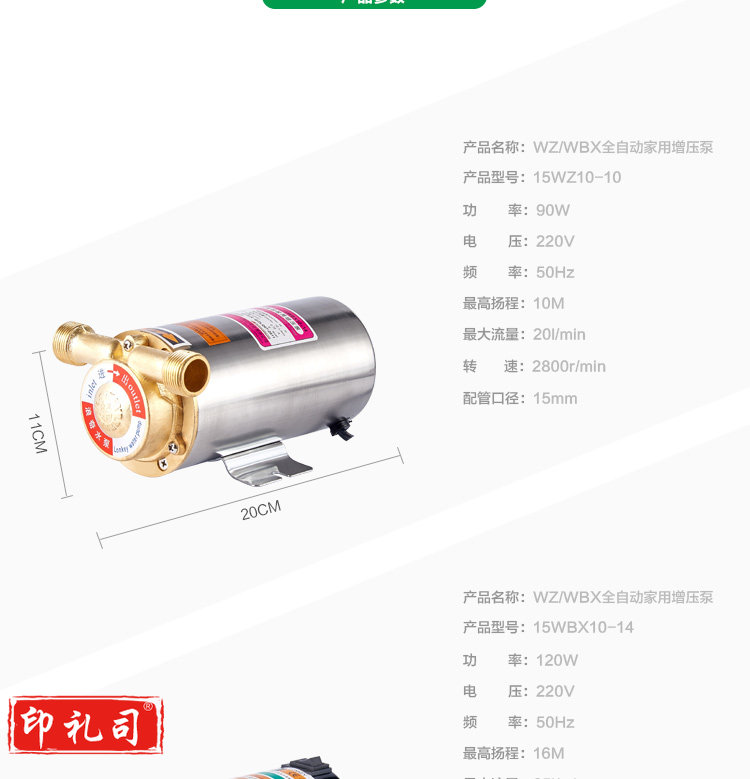 浪奇(LANGQI)全自动自来水增压泵15WZ-10-10-90W