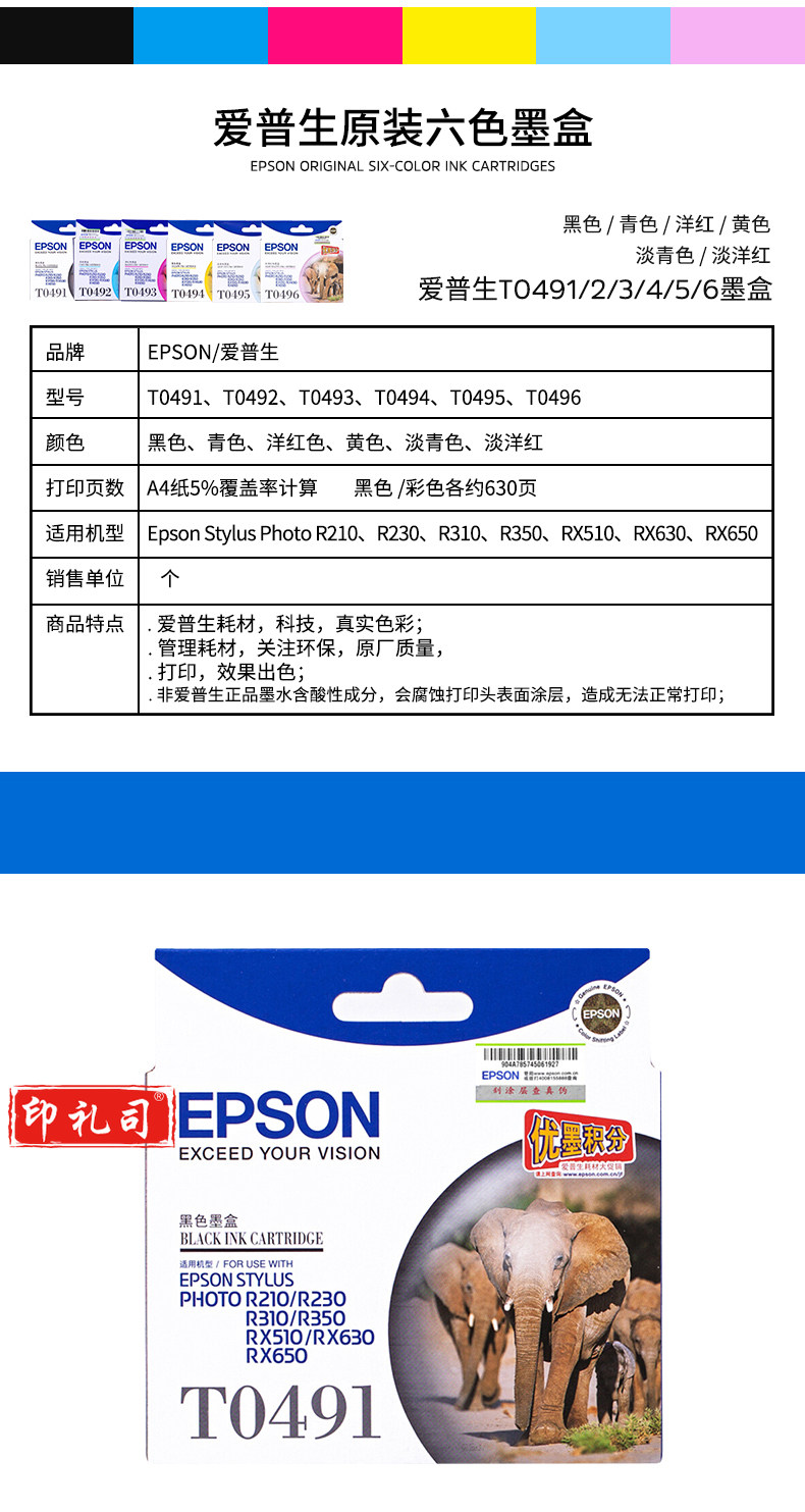 爱普生 T0492 青色墨盒R210/R230/310/RX510/650 打印机 T0492青色(约630页)