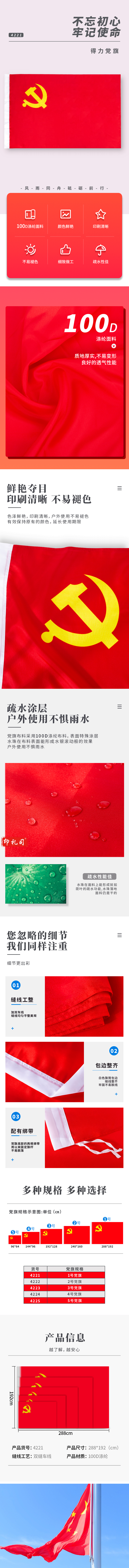得力(deli)4223-3号党旗 涤纶材质抗晒