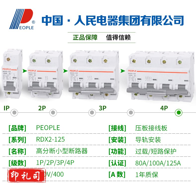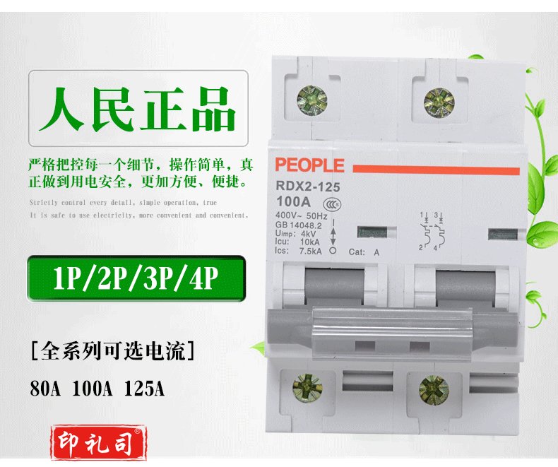 人民电器 RDX2 63A 80A 100A 125A空气开关