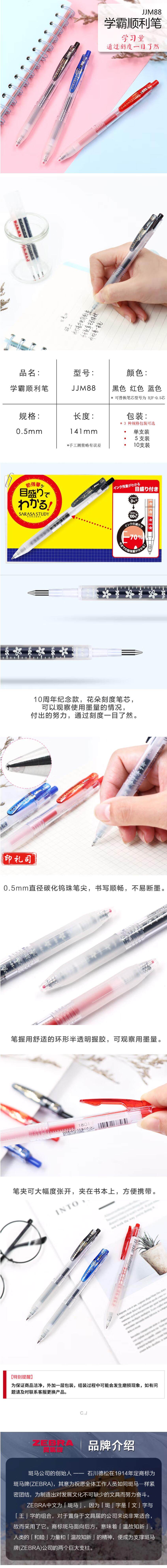 斑马 中性笔 0.5mm子弹头按压签字笔 JJM88 蓝色