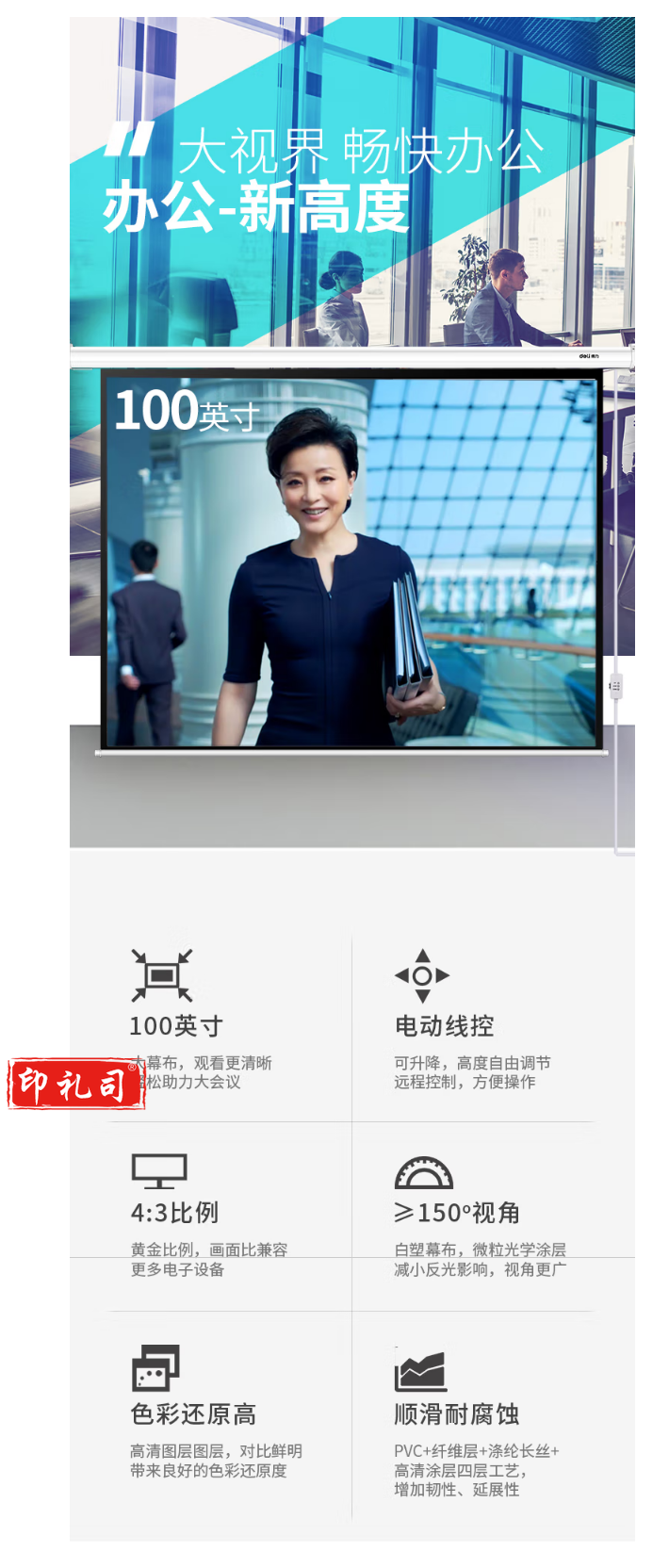 得力(deli) 50492 100英寸 4:3电动调节投影幕布投影布