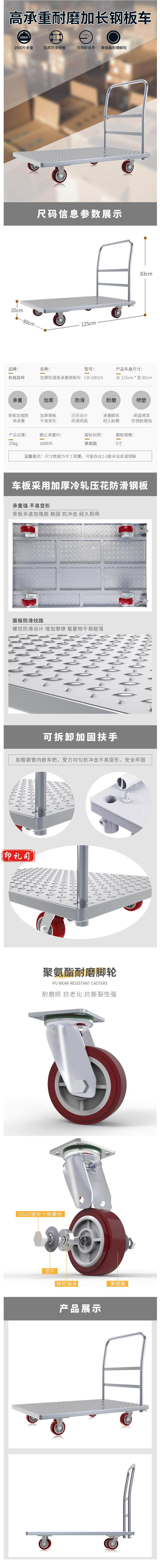 加重推车 CB-GB024钢板车平板车 80*125cm承重约1600斤