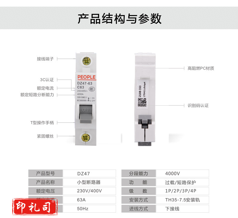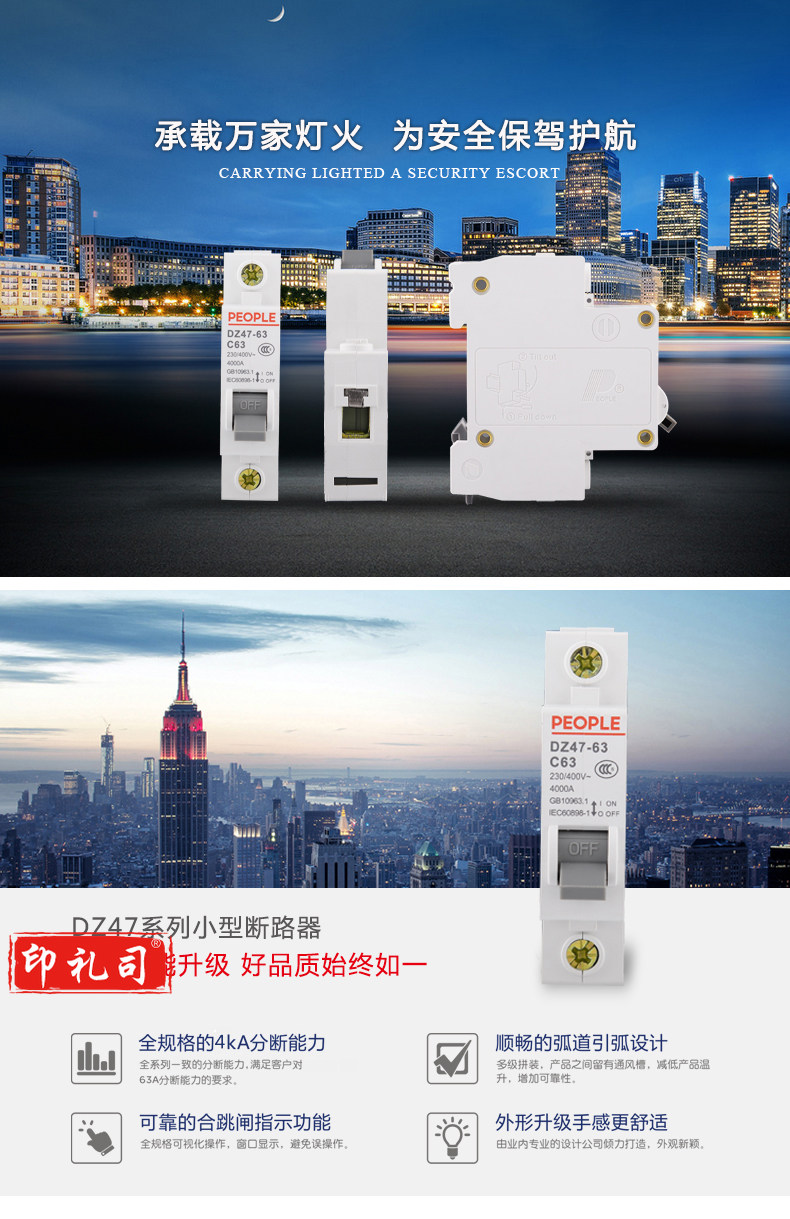 人民电器(PEOPLE)断路器 1P DZ47空气开关 10-63A.