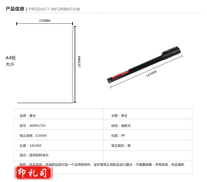 晨光 AGPA1701 红色0.5mm全针管中性笔 12支/盒