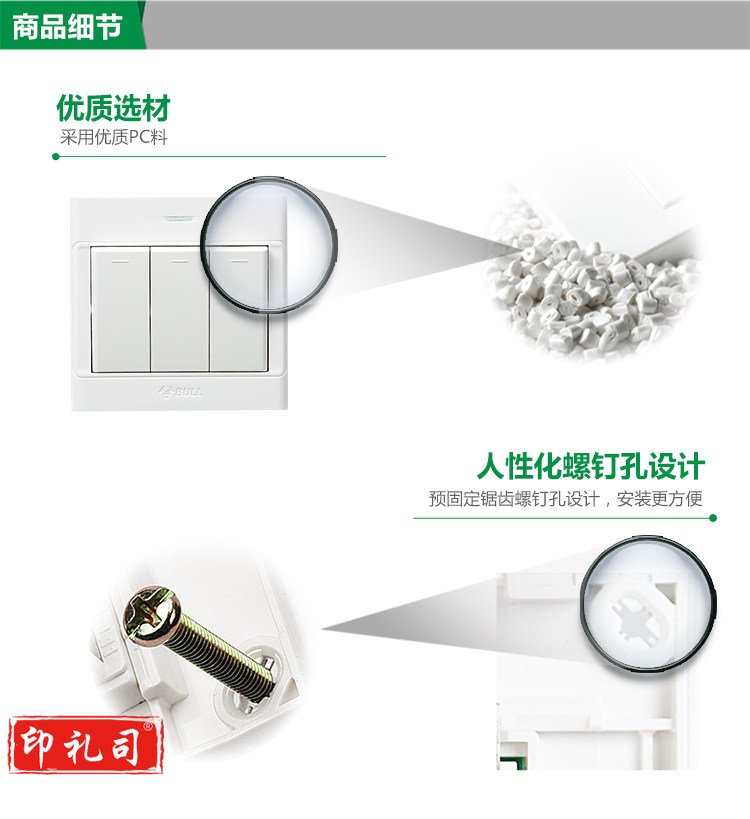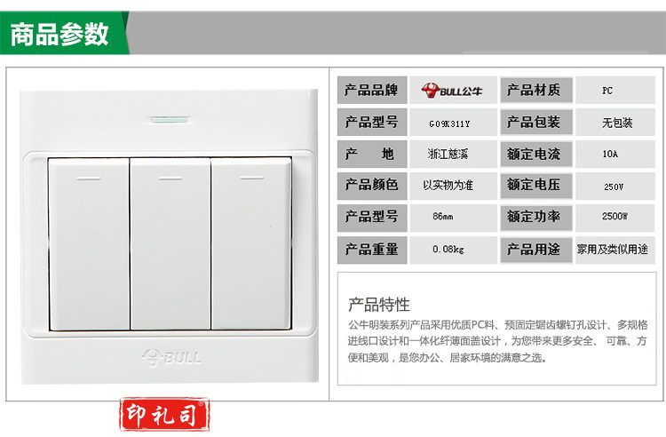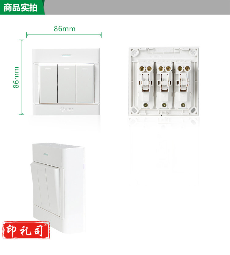 公牛(BULL) 明装开关插座 G09系列 三联单控电源开关 86型插座面板 G09K311Y