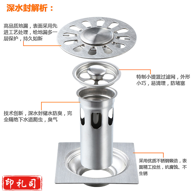 淼通 地漏防臭防虫厕所洗衣机双用地漏盖过滤网三通地漏不锈钢 双用6002