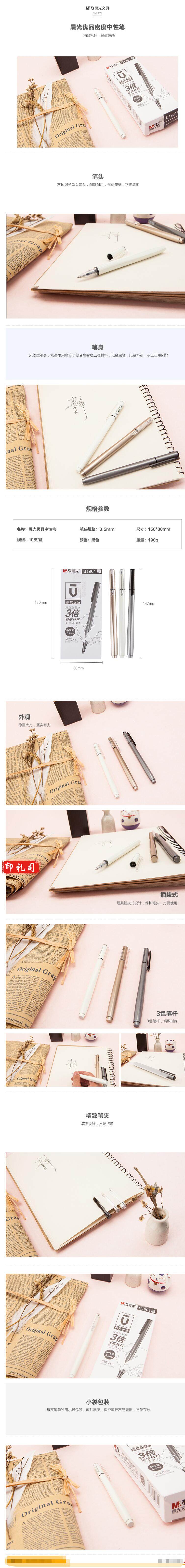 晨光AGPB1901红色中性笔 高密度子弹头0.5mm签字笔 水笔
