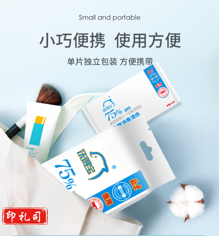 洗得宝 75%酒精湿巾 一次性消毒酒精棉片大号 单片独立包装 免洗洗手消毒液湿巾 10片