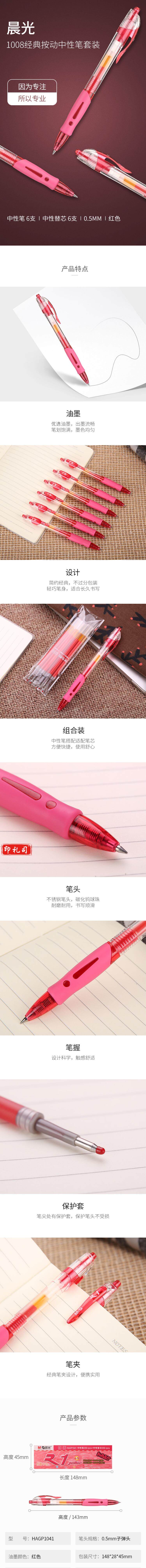 晨光GP1008 红色中性笔 0.5mm按动子弹头中性笔签字笔水笔 12支/盒
