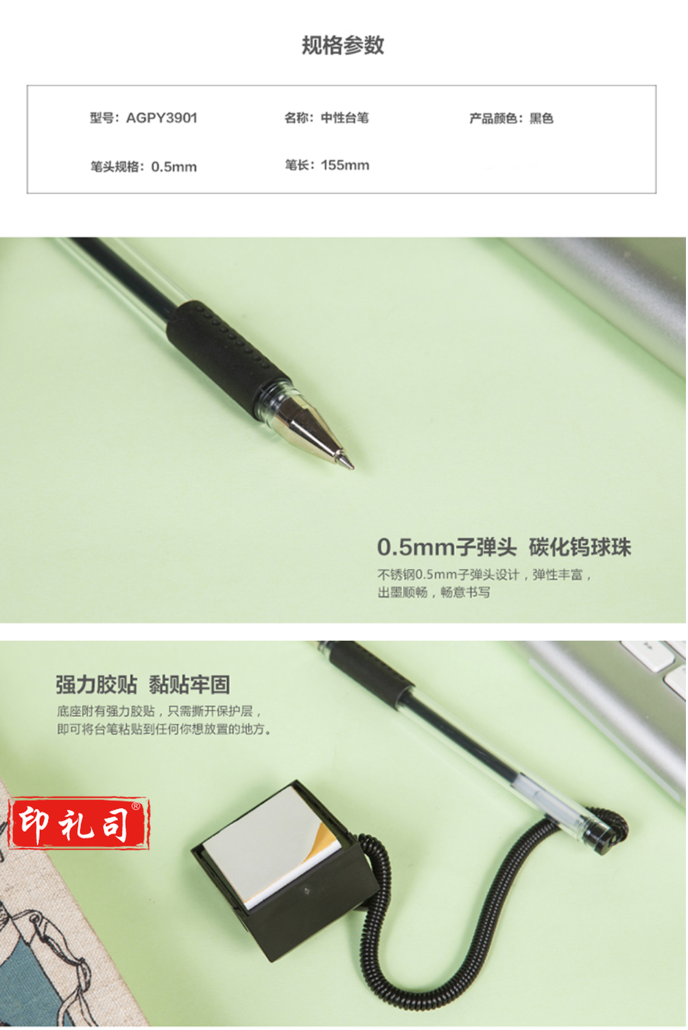 晨光 AGPY3901 晨光 柜台桌面专用可黏贴签字笔 0.5mm 按支销售