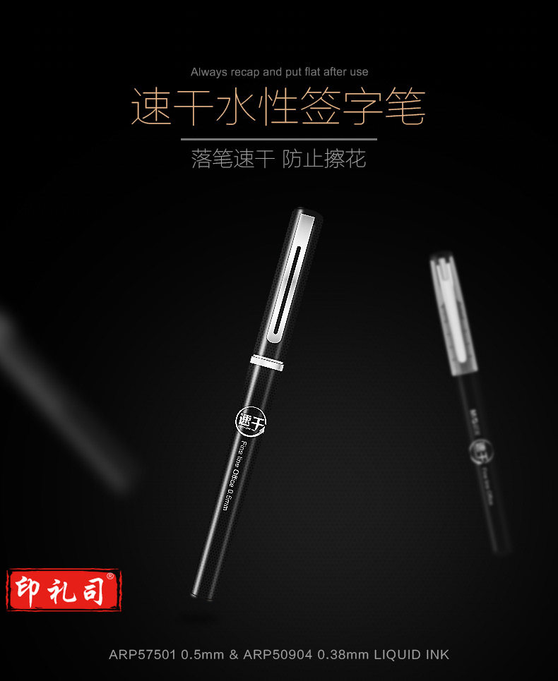 晨光 0.38mm黑色中性笔 速干全针管签字笔 直液式水笔 12支/盒ARP50904