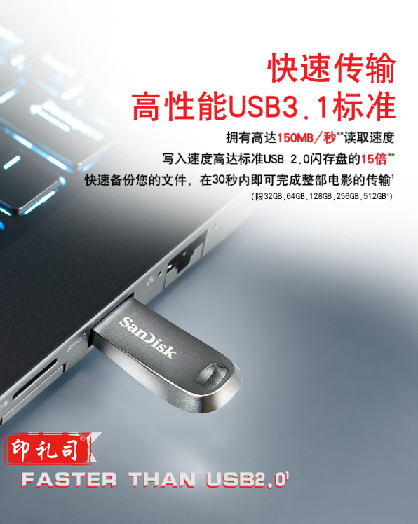 闪迪(SanDisk)256GB USB3.1 U盘 CZ74酷奂银色 读速150MB/s