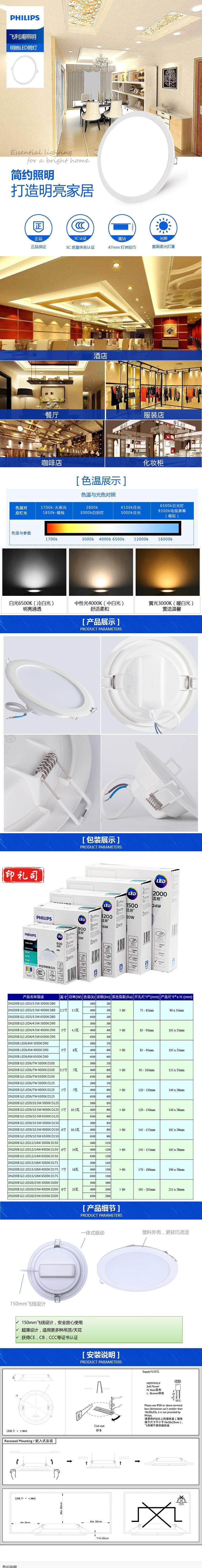 飞利浦 LED筒灯嵌入式超薄孔灯明欣LED筒灯 6寸【开孔150mm】10.5W/6500K