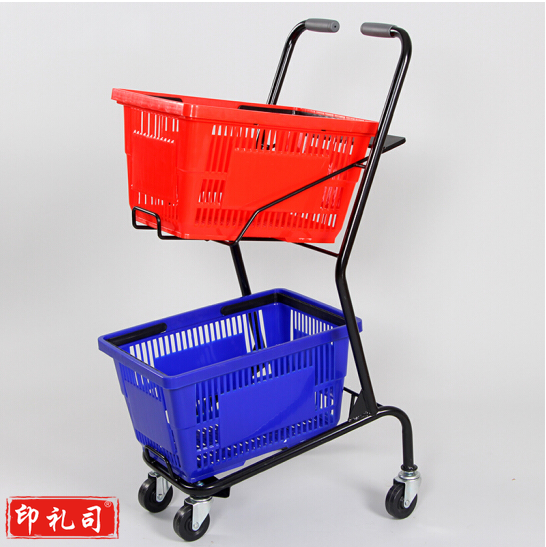 双层提篮车、商场家用超市购物车、酒吧KTV手推车粉色理货车 黑色双层分把提篮车(含2塑料篮)