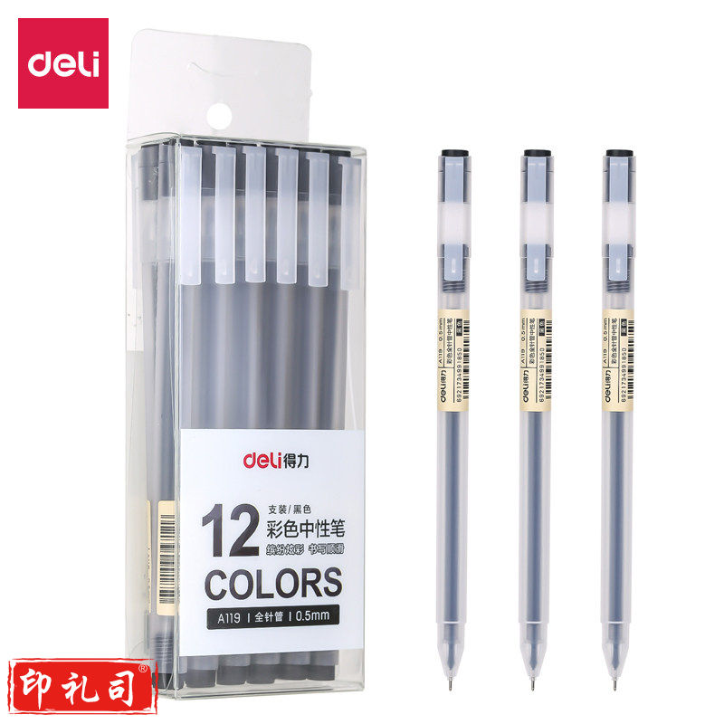 得力A119彩色中性笔0.5mm全针管(黑)12支装 /盒