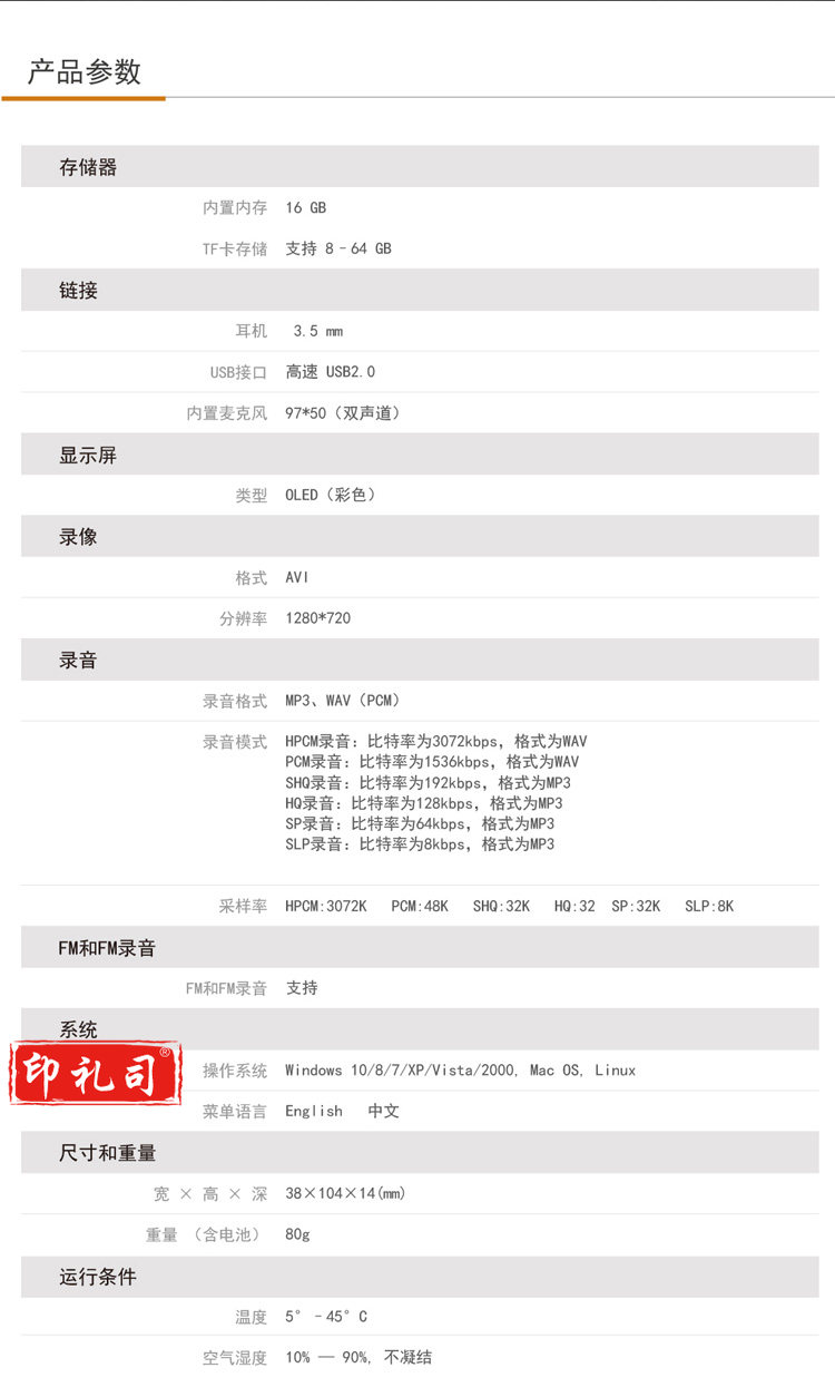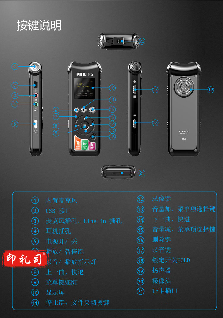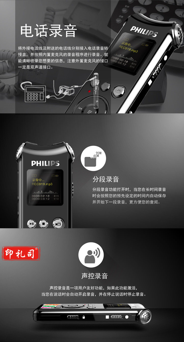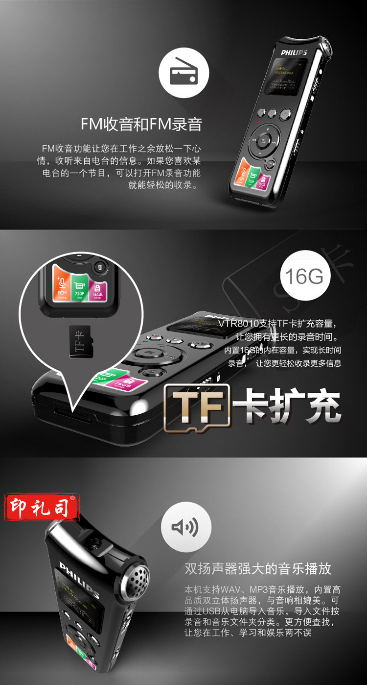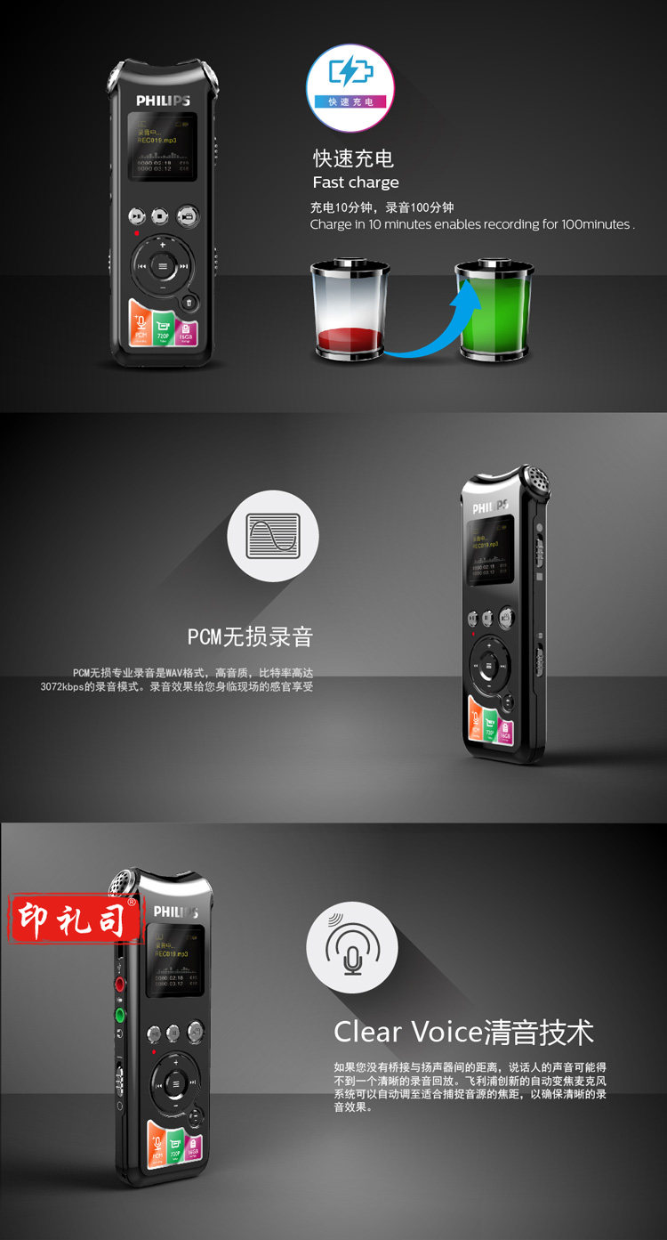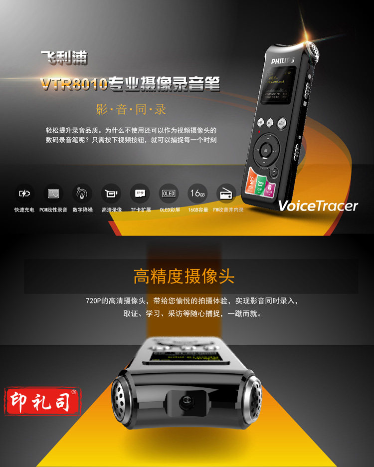 飞利浦(PHILIPS)VTR8010 16GB 执法取证 录音笔 720P高清录像摄像