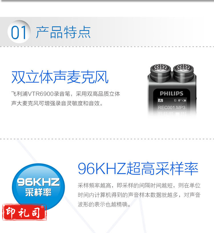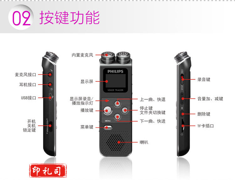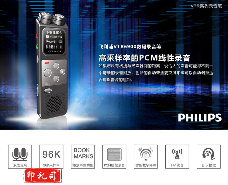 飞利浦(PHILIPS)VTR6900 会议采访 高采样率高音质PCM线性一键紧急录音笔