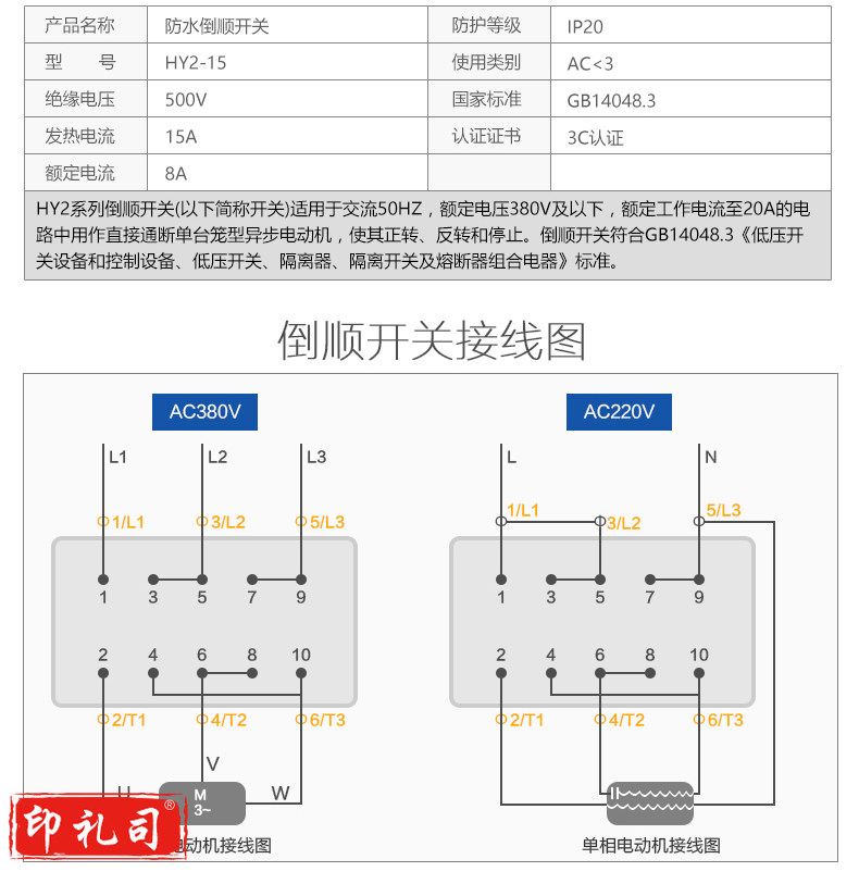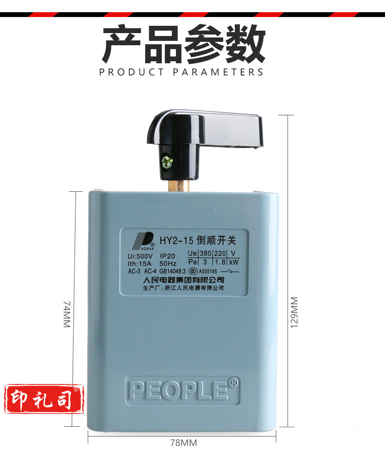 人民电器 倒顺开关 HY2-15A 正反转开关