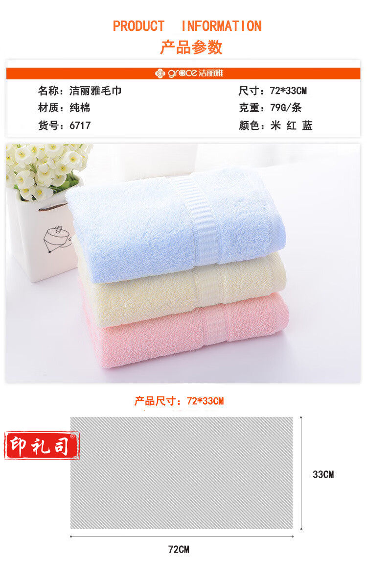 洁丽雅毛巾 纯棉柔软吸水素色全棉毛巾刺绣logo 洁丽雅6717 蓝色毛巾