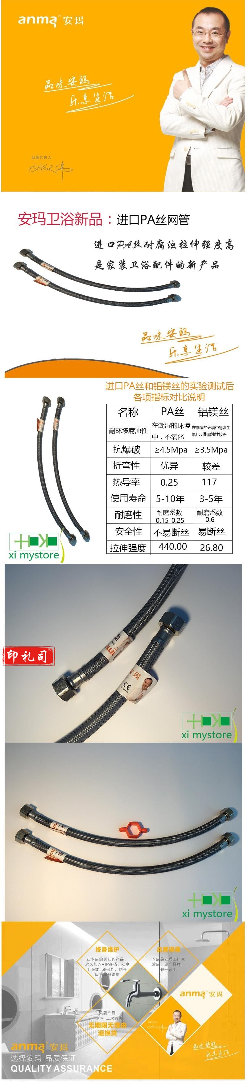 不锈钢软连接管 100cm 马桶软管 编织冷热进水软管 上水管 安玛双锁母编织软管