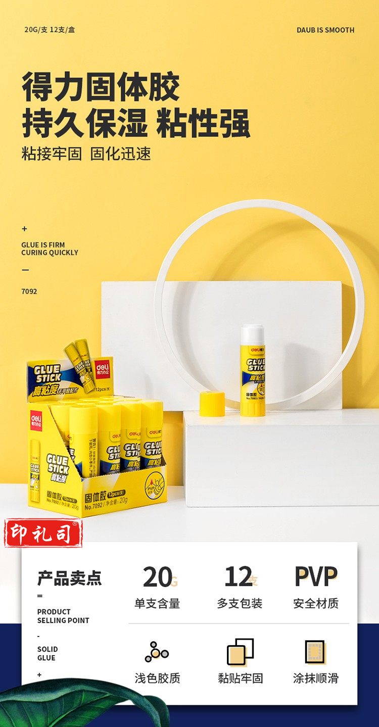 得力7092固体胶(白)(12支/盒) 单位:盒