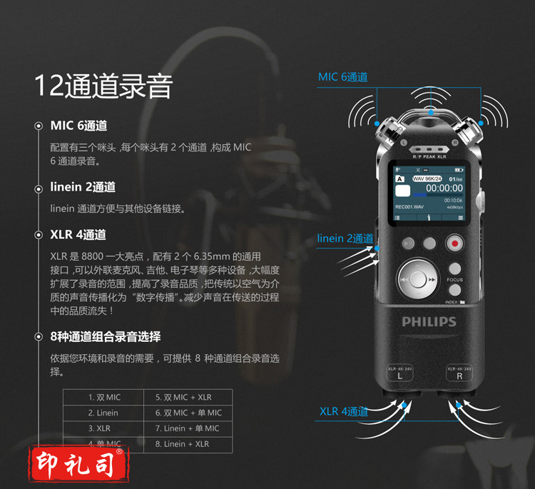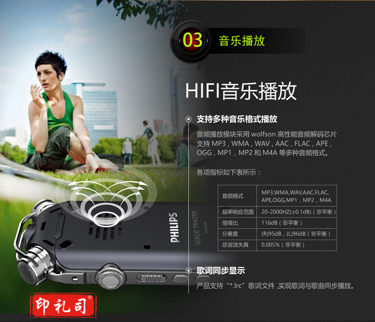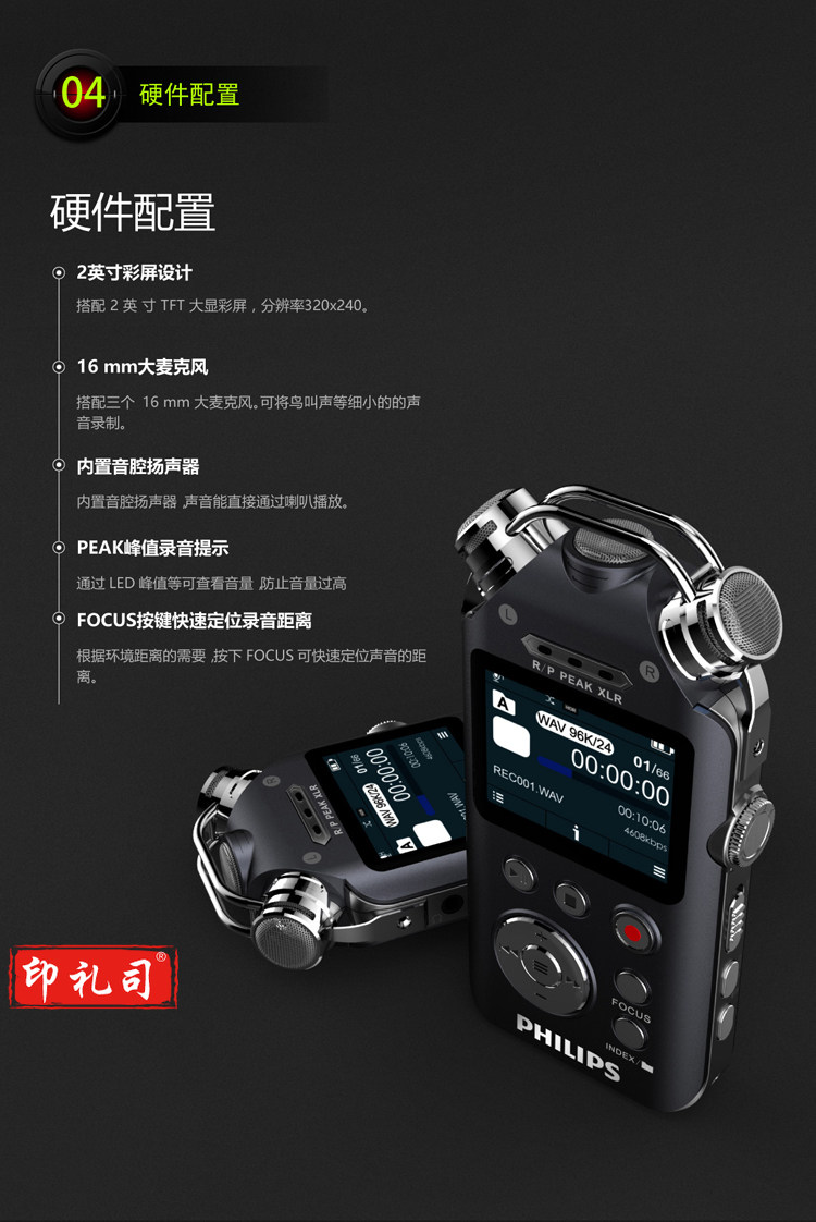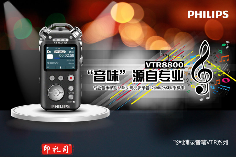 飞利浦(PHILIPS)VTR8800 16G 高端精选 录音笔 12通道发烧HIFI音乐播放器