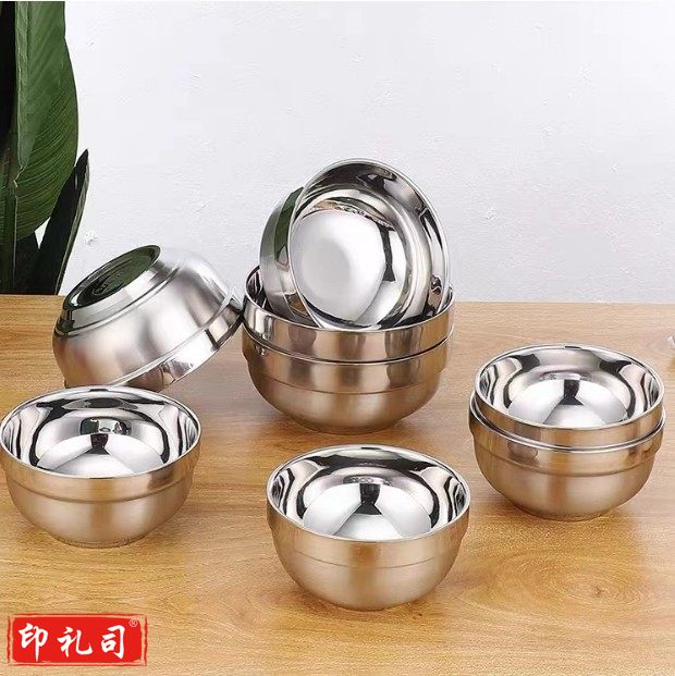 幼儿园儿童饭碗双层隔热商用304不锈钢碗防烫汤碗耐摔耐用(13cm铂金碗)