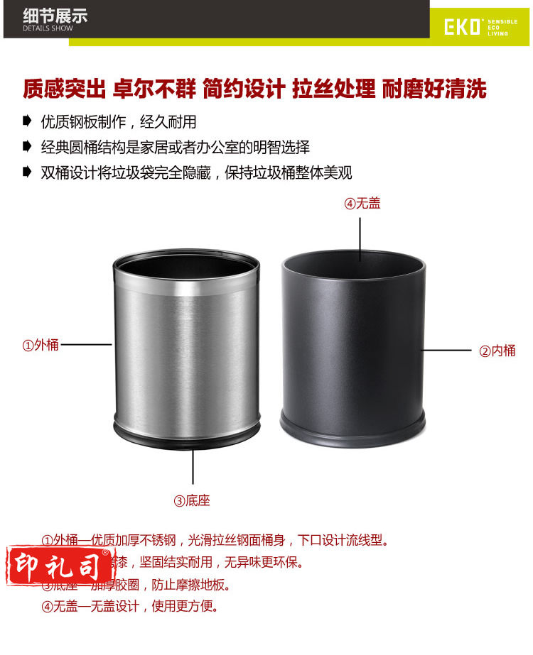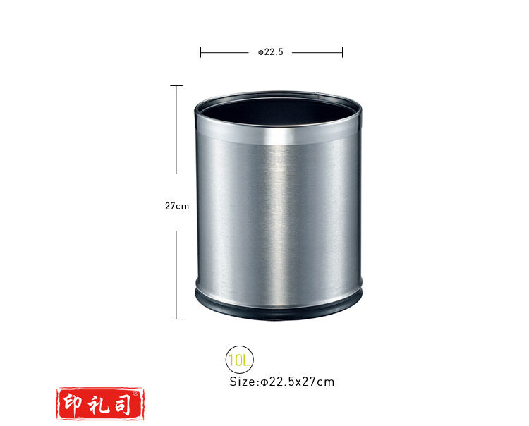 单层不锈钢垃圾桶 无盖 22.5*26.5cm 10L