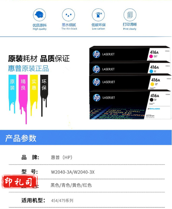 惠普416A硒鼓原装适用m454dw/nw/dn m479dw m479fdw fnw打印机四色套装w2040a-3a黑色彩色