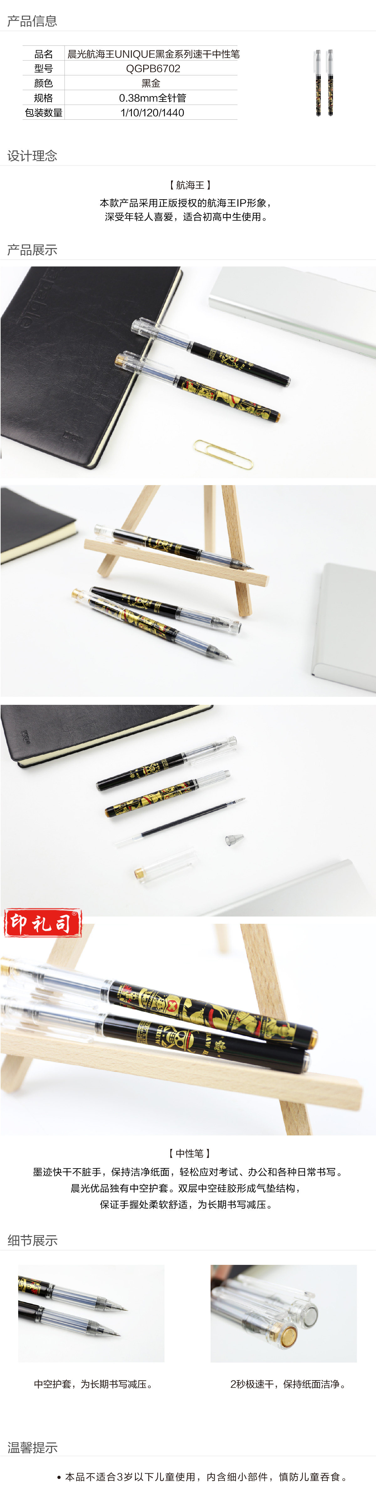 晨光(M&G)0.5mm黑色中性笔 签字笔 黑金速干水笔 10支/盒QGPB6702