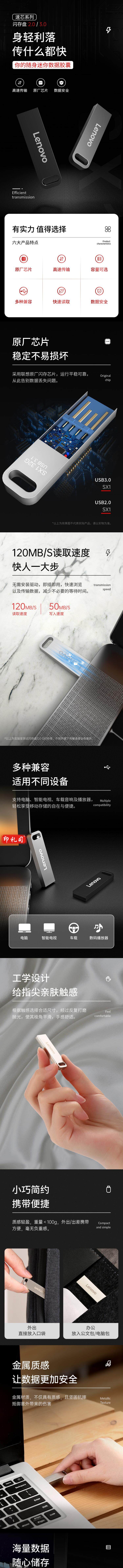 联想 U盘64G 3.0速芯 U盘闪存 枪色