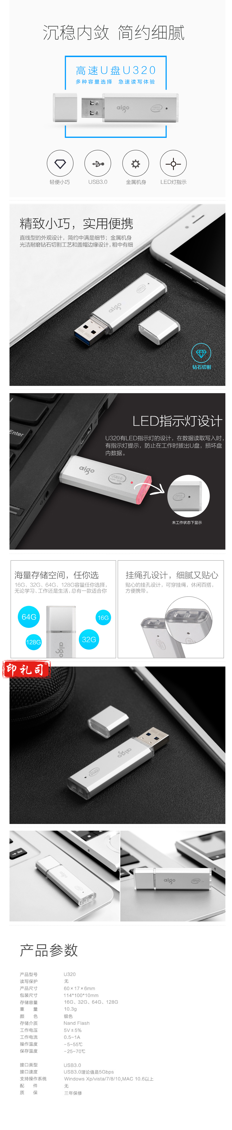 爱国者(Aigo)U320 16G优盘 USB3.0高速U盘