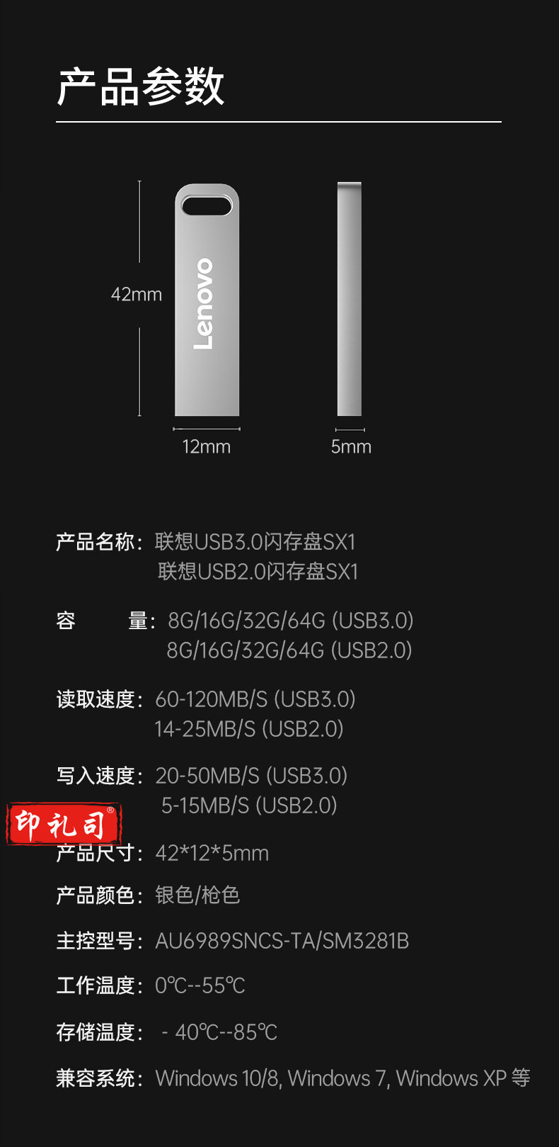 联想(Lenovo)U盘32G USB2.0速芯SX1系列U盘闪存U盘银色