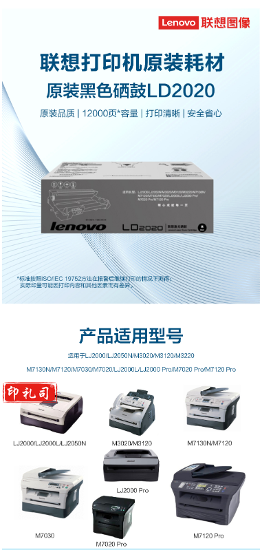 联想(Lenovo)LD2020 黑色硒鼓(适用于LJ2000/M3120/M7120)约12000页
