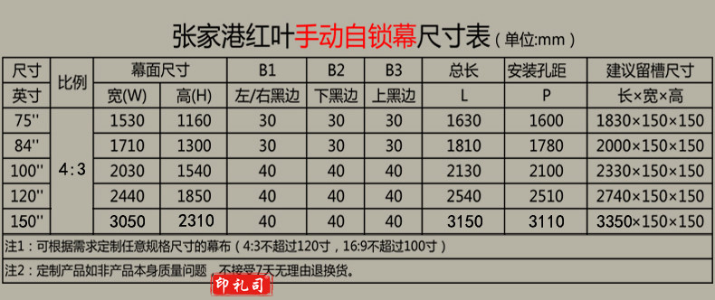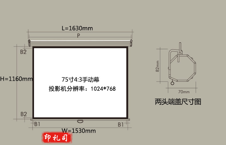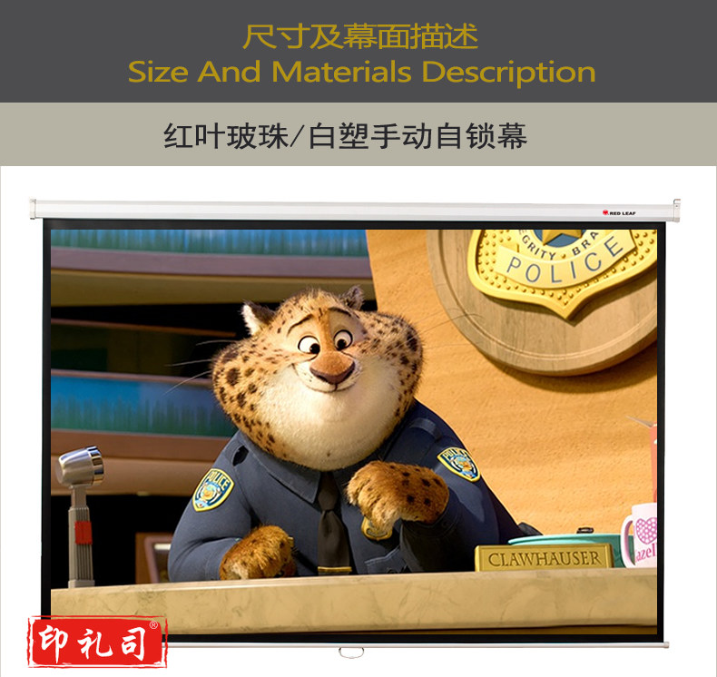 红叶(HONGYE)手动自锁投影幕75寸4:3玻珠 白塑幕布 1.53*1.16