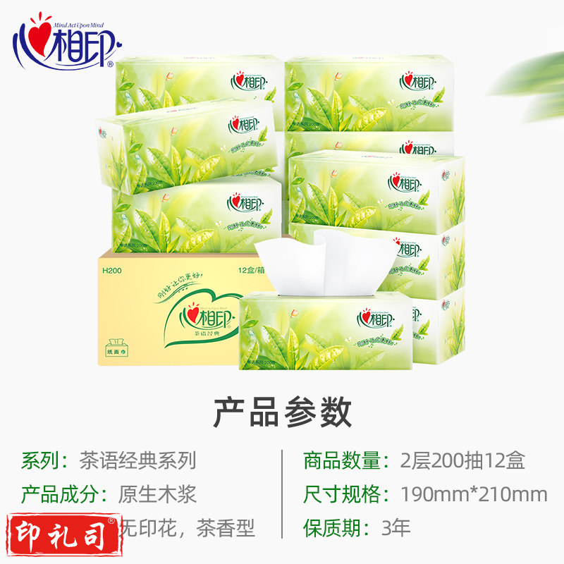 心相印抽纸/盒抽 茶语经典 2层200抽*12盒 淡茶香加厚 纸巾 整箱 H200
