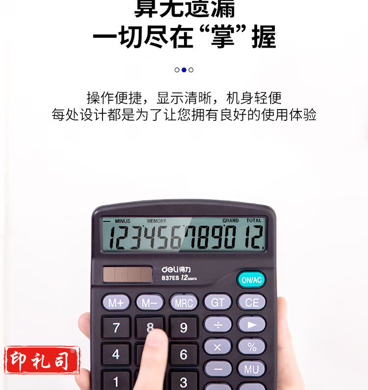 得力(deli)双电源桌面办公计算器 12位大屏幕桌面计算机 办公文具用品 837ES