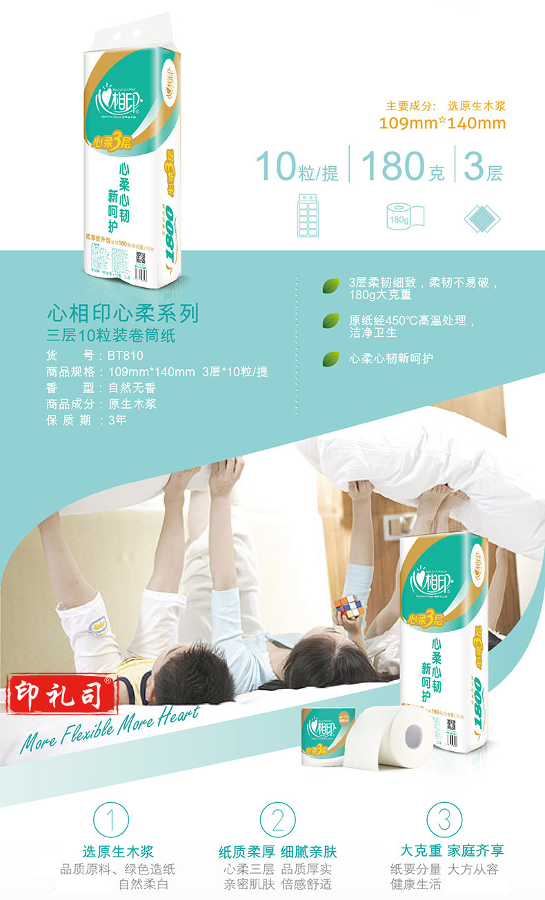 心相印 3层卫生纸 180g纸巾 10卷/提 厕纸 家庭装卷筒纸BT810