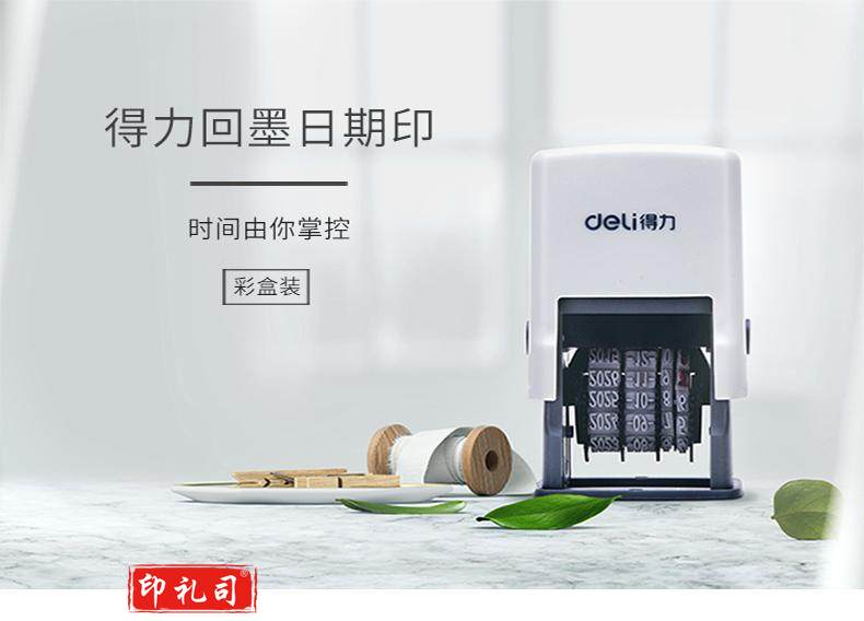 得力(deli) 回墨日期印年月日可调时间印章 生产日期打码机 办公用品 小号实线 数字横杠日期印 79951