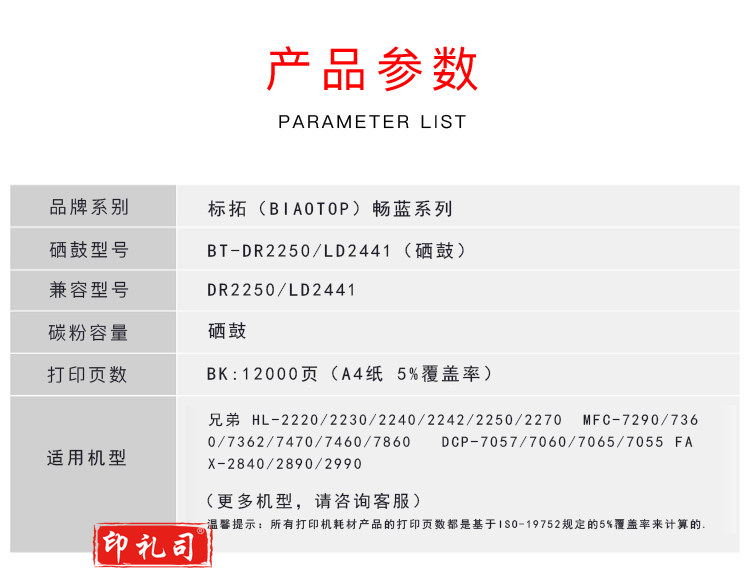 标拓 (Biaotop) DR2250/LD2441 适用兄弟DCP7057/MFC7360 /HL2240/7400/LJ2400L