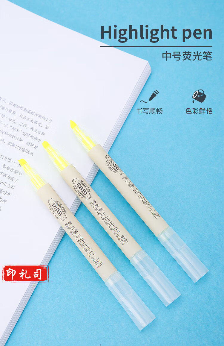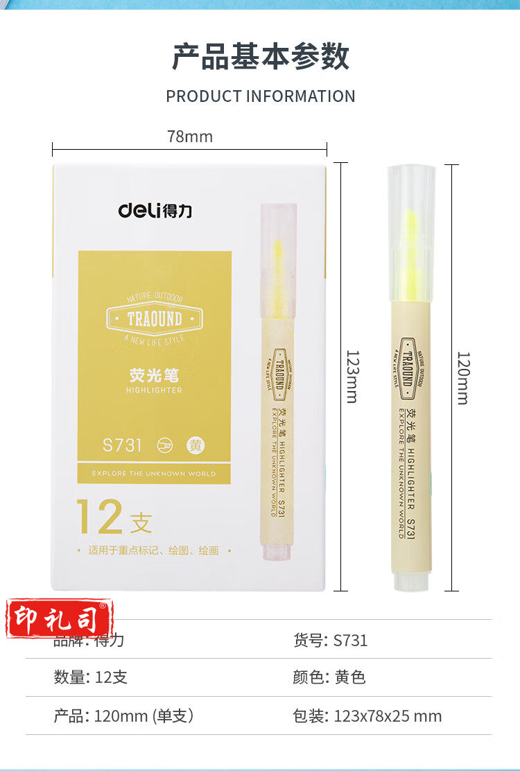得力(deli)S731 荧光笔醒目标记笔 水性记号笔 12支/盒 黄