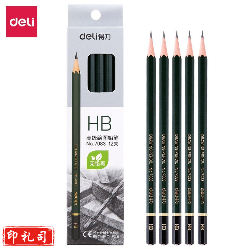 得力7083-HB高级绘图铅笔(绿色)(12支/盒)