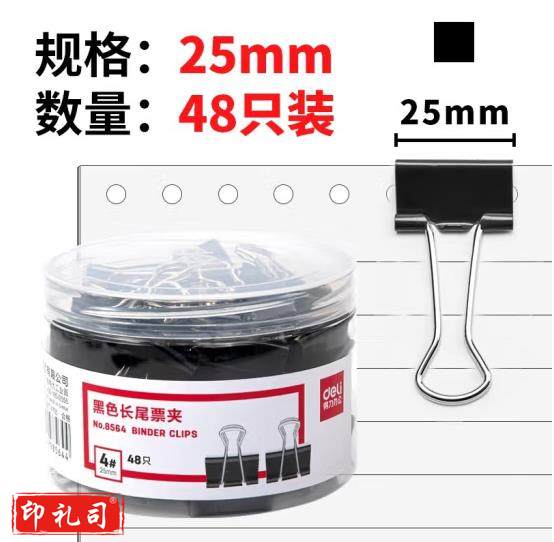 得力 48只 25mm黑色长尾夹票夹 金属燕尾夹 票据文件夹子中号8564