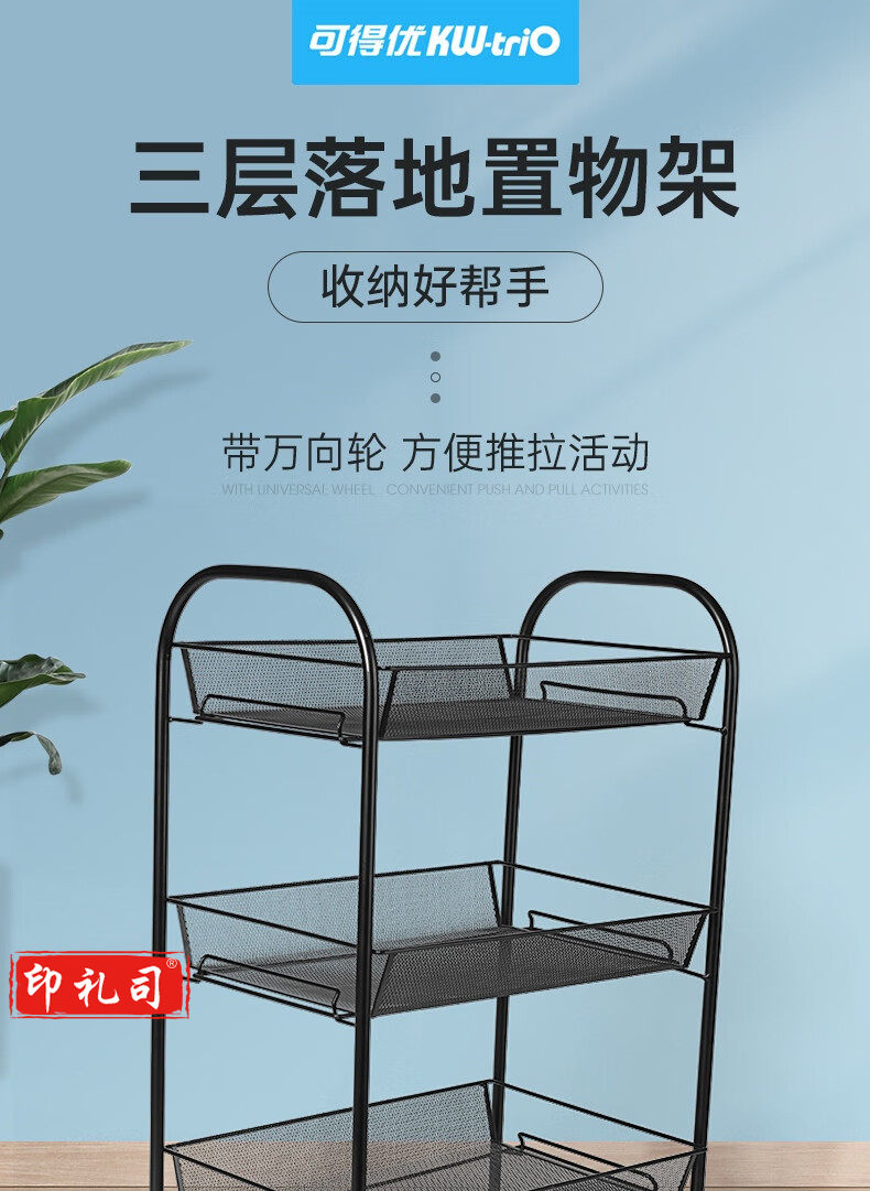可得优(KW-triO) 办公文件架落地可移动小推车多功能收纳架家用置物架客厅零食储物架 4层收纳架