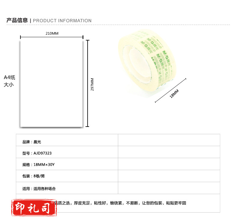 晨光AJD97323 文具胶带18mm*30y(8卷)