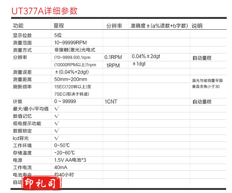 优利德(UNI-T) 迷你激光转速计 转速表