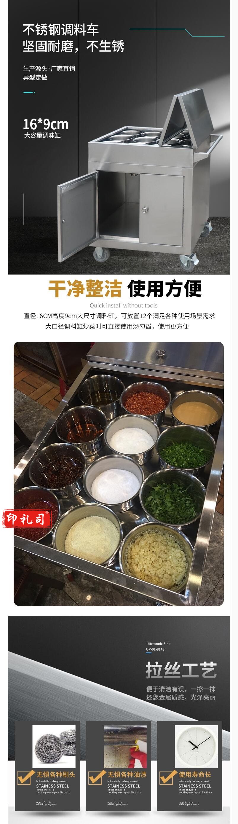 不锈钢箱体式调料车 移动多功能调味车 加厚 对开门 12个调味缸