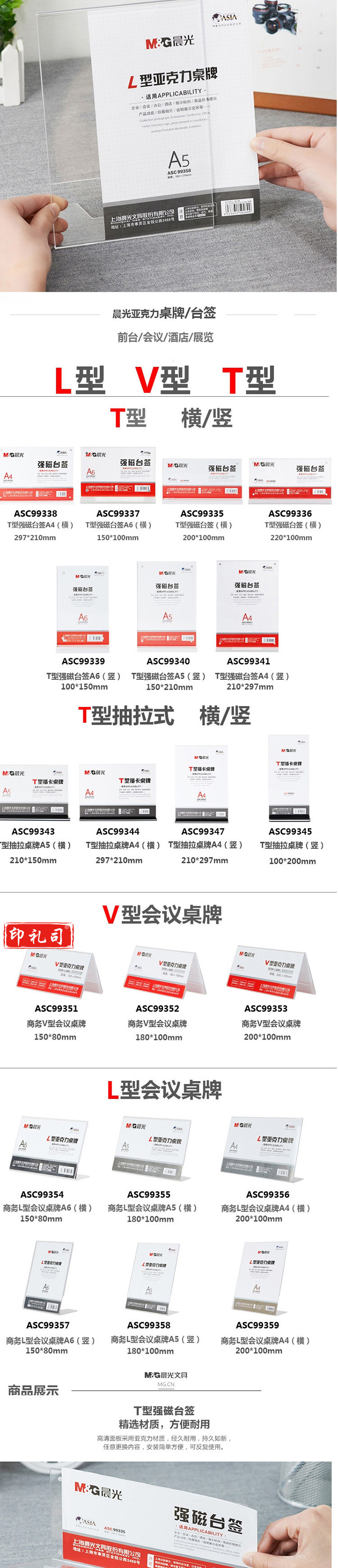 晨光 ASC99354 A6横商务L型会议/桌牌 透明色(单位:个)