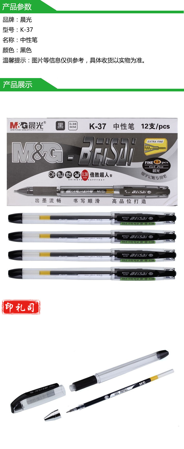 晨光 K-37 会计中性笔 黑色 0.3 8mm (计价单位:支)